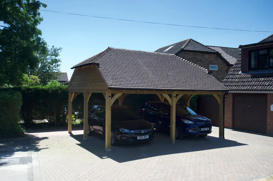 If a fully enclosed garage feels too substantial for the space you have available, you could opt for a timber-framed carriage house or carport instead.
